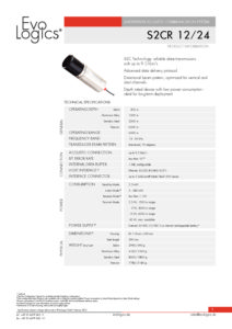 EvoLogics S2CR 12/24 underwater acoustic modem is a depth-rated device for long range operations, providing data transfer rates up to 9.2 kbit/s over a 6000 m range. Low power consumption makes it ideal for long-term deployment. A directional transducer beam pattern (70 deg) is useful in vertical or slant channels or for stationary systems.