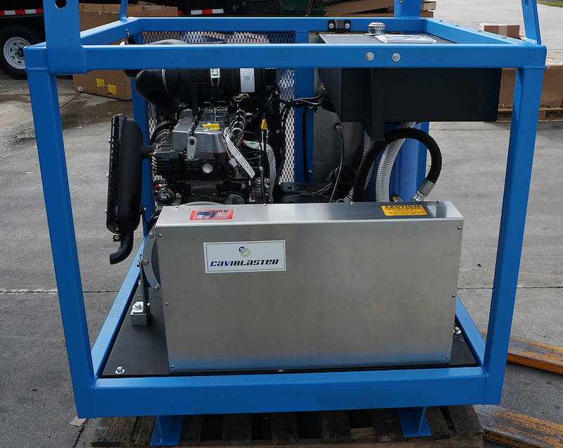 This is an Industrial workhorse which generates a super stream of high velocity cavitation bubbles for highly efficient cleaning which can strip fouling, corrosion and coatings to bare metal if desired, this unit is off-shore rated with an electric version available.