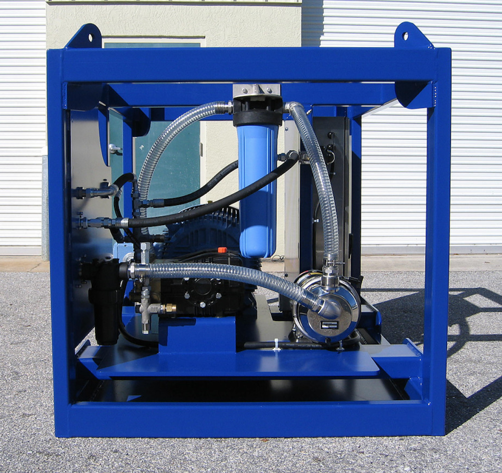 This is an Industrial unit which generates a super stream of high velocity cavitation bubbles for highly efficient cleaning which can strip fouling, corrosion and coatings to bare metal if desired, this unit is off-shore rated with a Diesel version available.